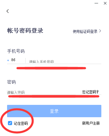 用真实手机号注册,并牢记登录腾讯会议软件的密码(建议勾选“记住密码”) 或者“使用验证码登录”,如下图: