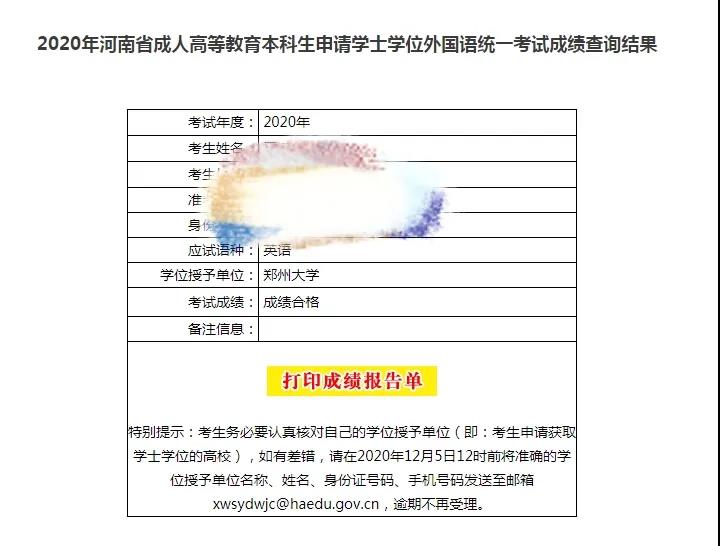 1、 学位外语成绩查询时间:2020年11月29日12时至2020年12月5日12时。