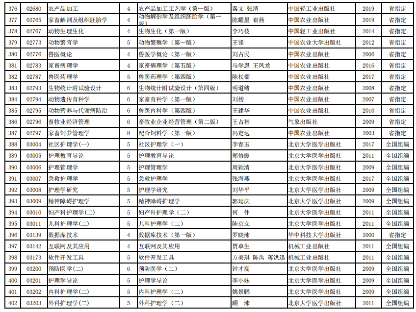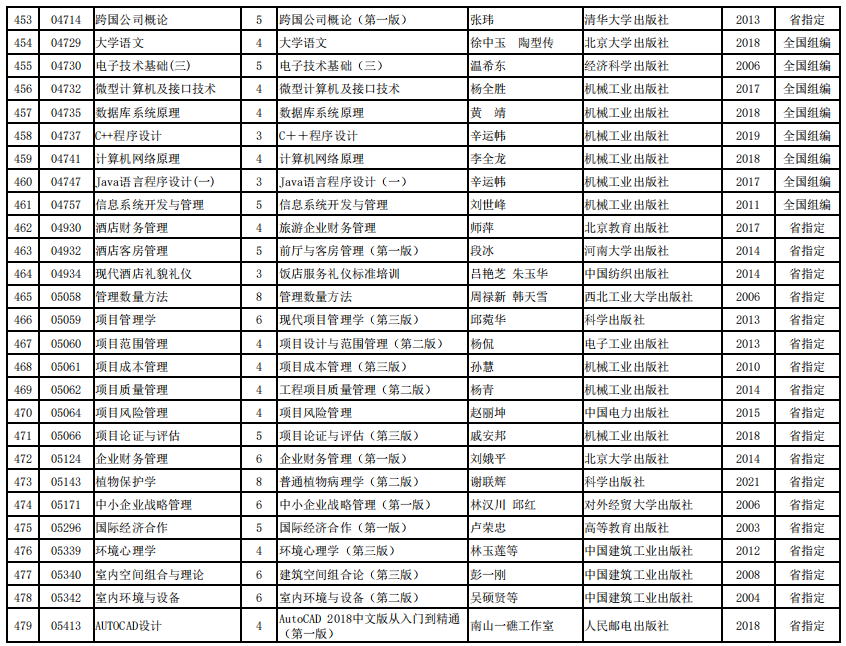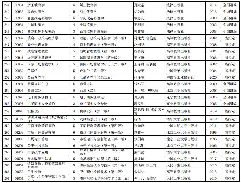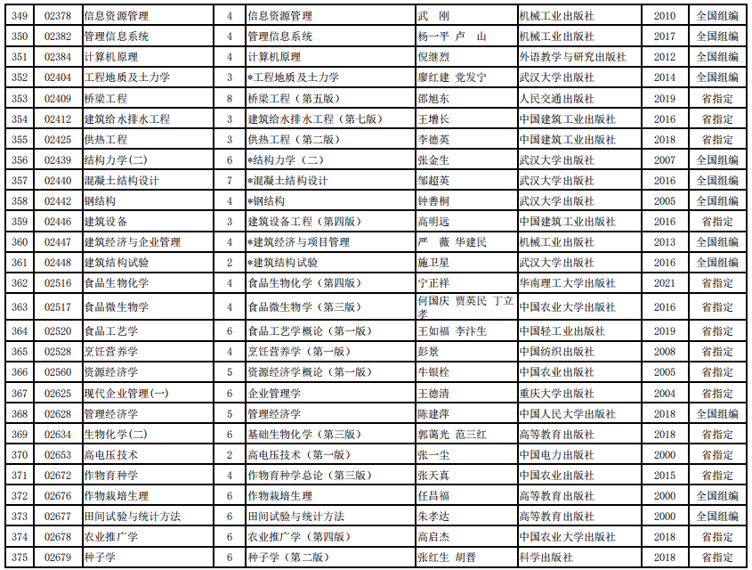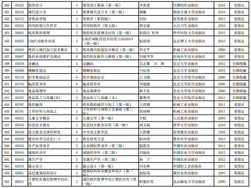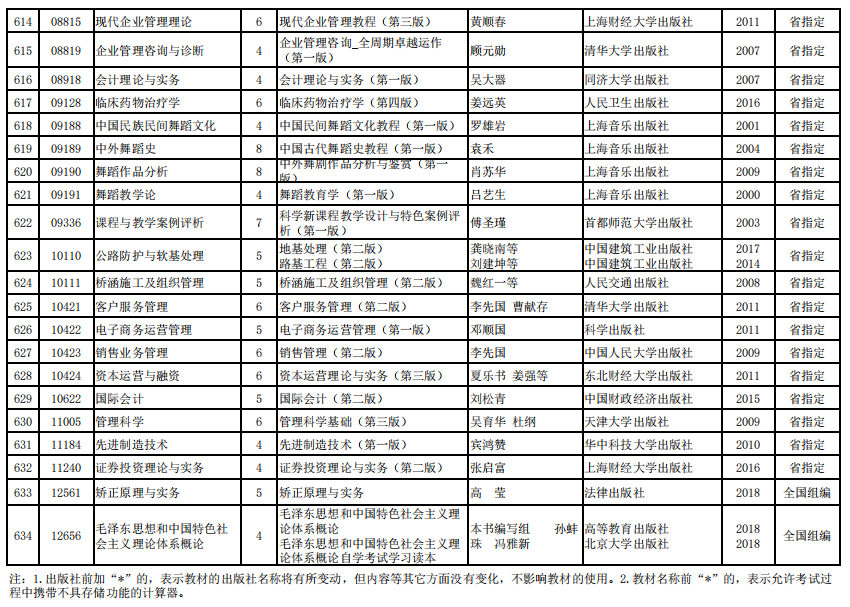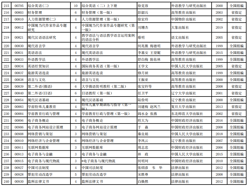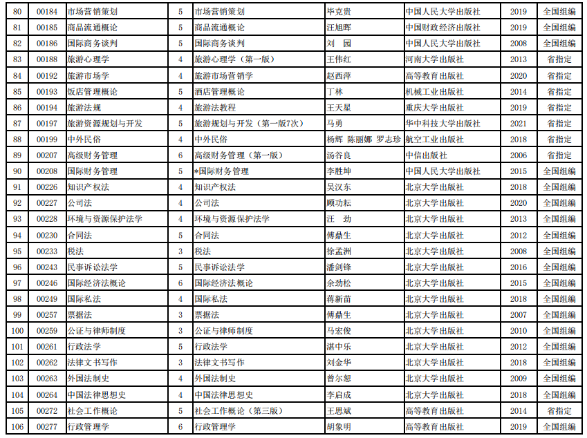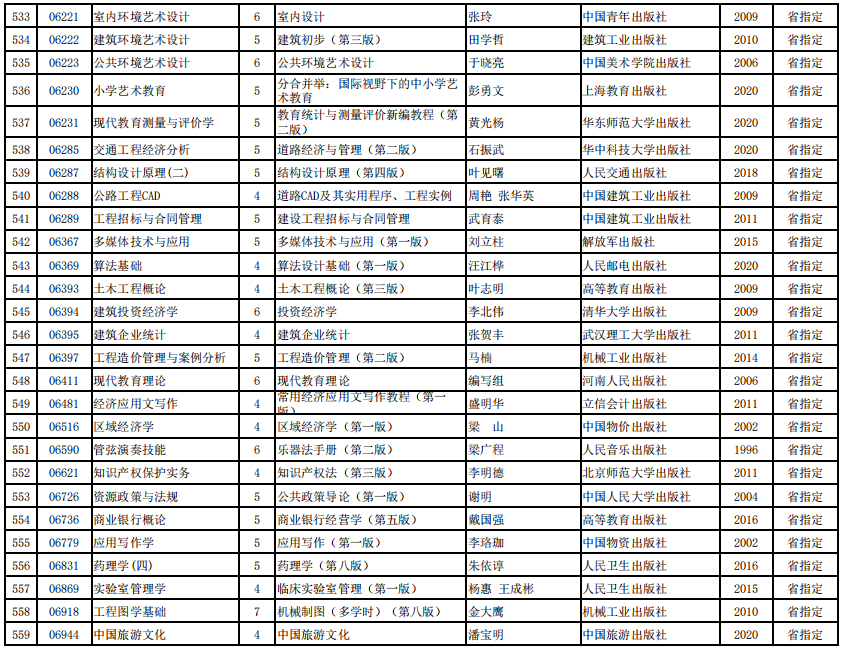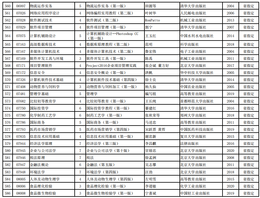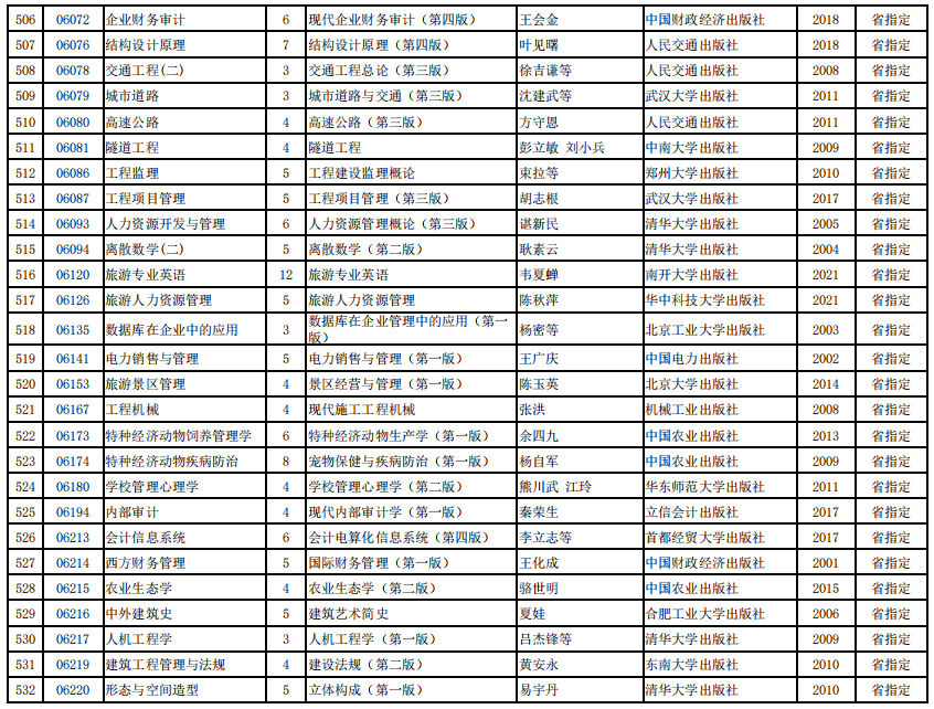 2022年河南省高等教育自学考试使用教材表