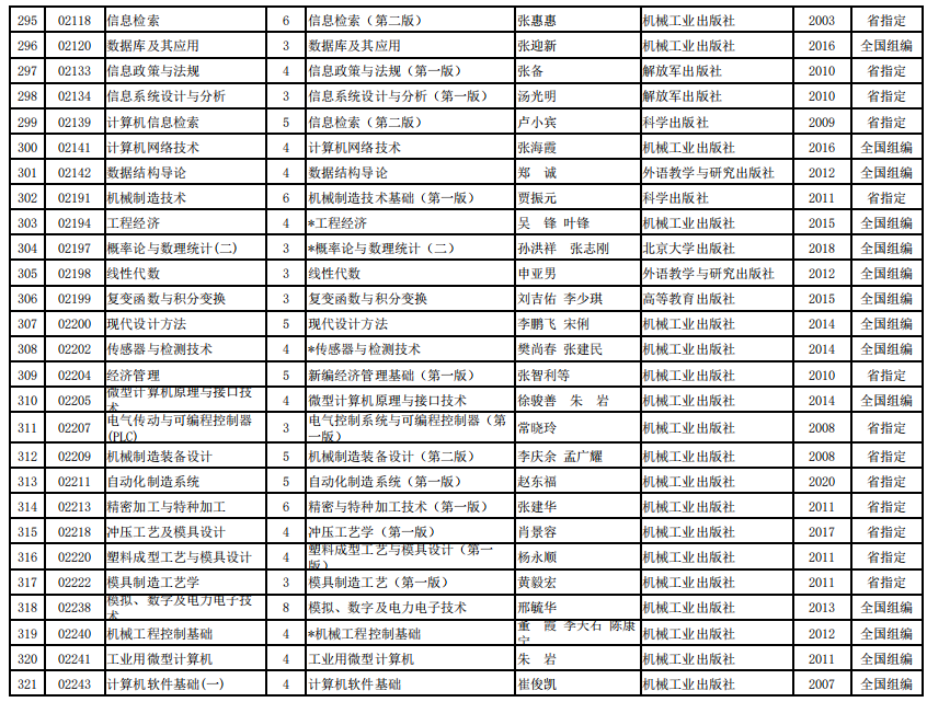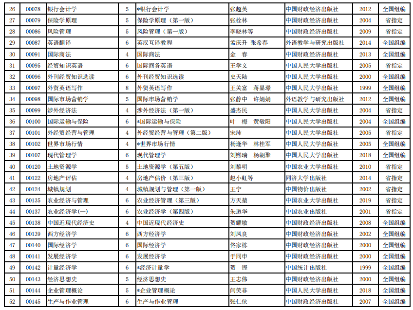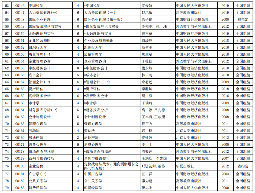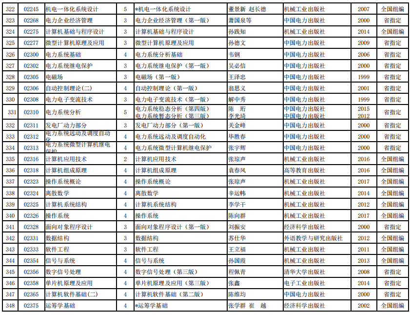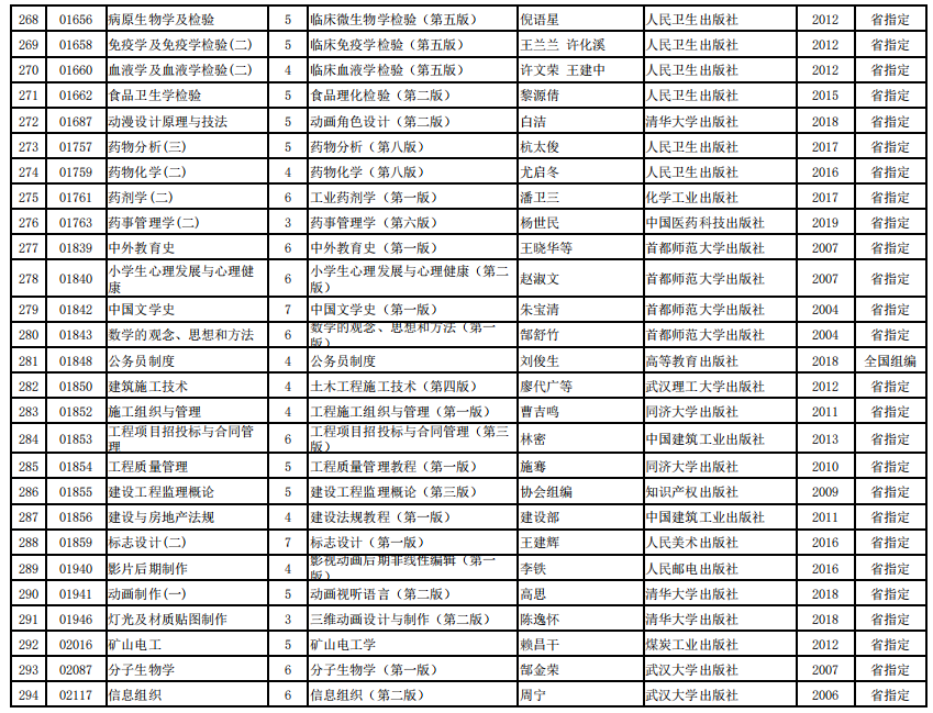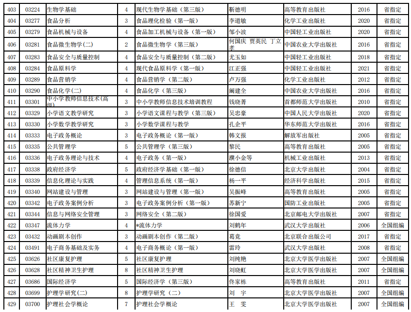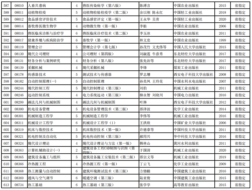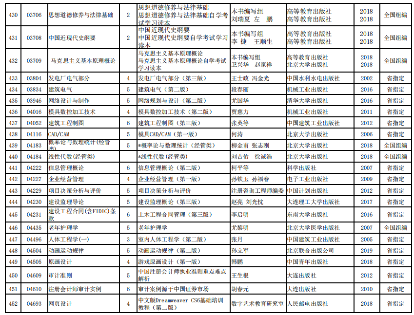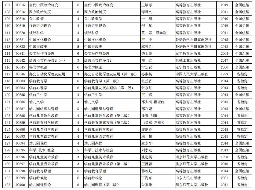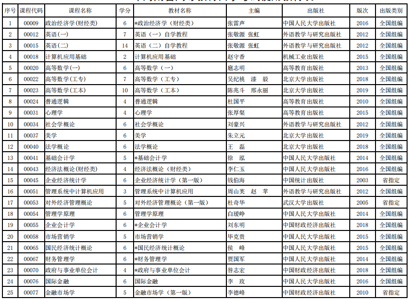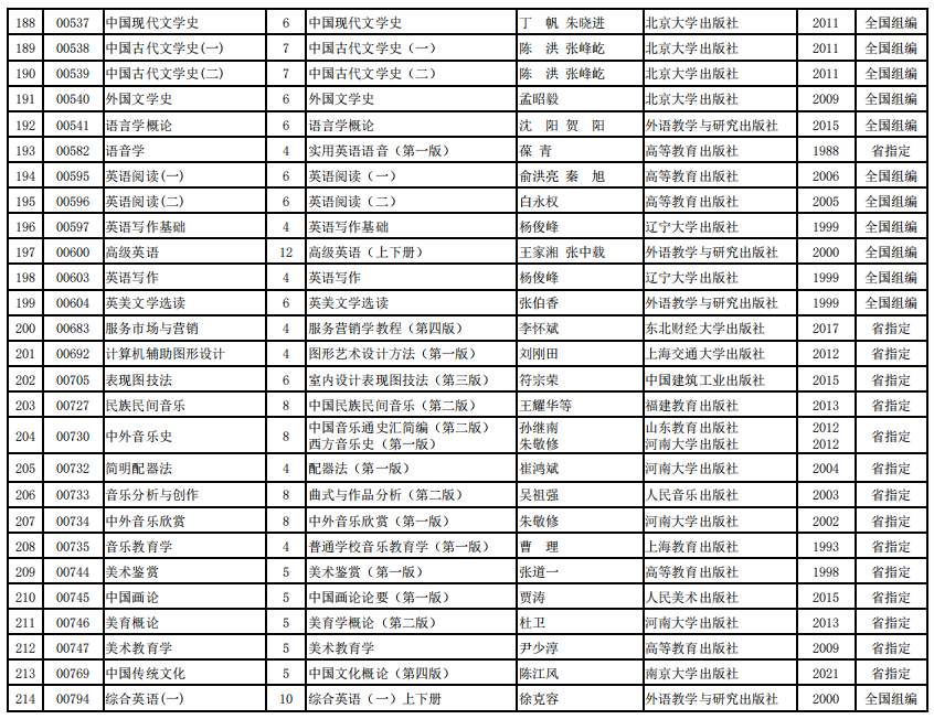 2022年河南省高等教育自学考试使用教材表