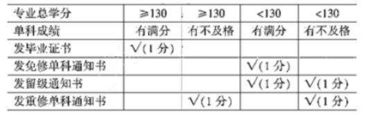 满分,则留级时发免修单科通知书,该科予以免修。若单科有不及格则发重修单