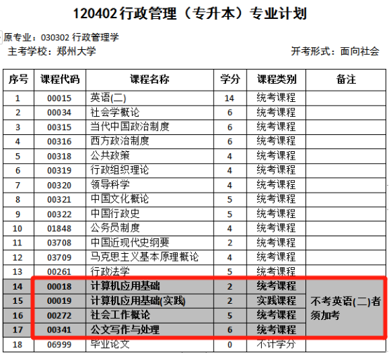 (二)(00015)”课程;取得全国公共英语等级考试(PETS)二级及以上考试证书者,可免考“英语(一)(00012)”课程。