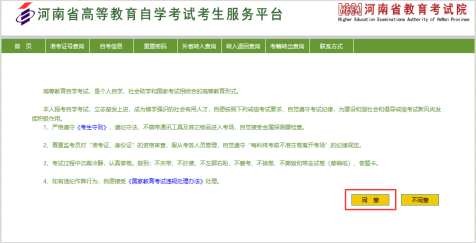 2.阅读了解自学考试相关政策、规定以及《国家教育考试违规处理办法》,点击同意按钮。