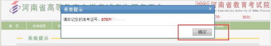 5.生成准考证号:请牢记您的准考证号,并点击确定按钮。