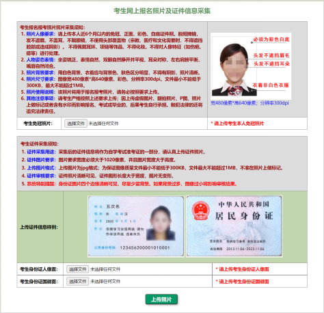未上传本人照片和身份证照片的新老考生须根据提示上传照片,否则无法报考。