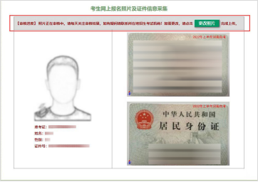 2.如果照片未通过审核,点击“考生图像采集”→“更改照片”重新上传。