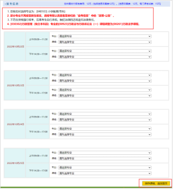 2.仔细阅读报考信息,并认真检查填报的专业及课程→确认无误后保存课程,返回首页。