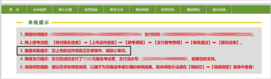3.重新上传后,在报名期限内登录河南省高等教育自学考试考生服务平台(zkwb.haeea.cn)查看照片是否审核通过。照片审核成功后,报名结束。