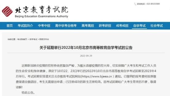由于前段时间,北京市2022年10月份自考考试宣布延期,并且直接延期到了2023年4月份,所以导致很多学生有些慌乱,着急,然后大家都在公众号后台留言,打电话,问河南省今年10月份的自考会不会延期?或者会不会取消?