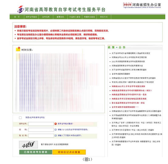 考生登录“河南省高等教育自学考试考生服务平台”(http://zkwb.heao.gov.cn/),使用准考证号和密码登录(图1)。