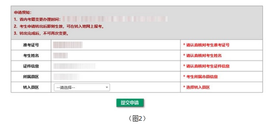 2.我省考生转往外省的在网上申请转出外省时,务必认真填写转出信息,如个人信息不一致会导致转考到外省不成功。转考不成功